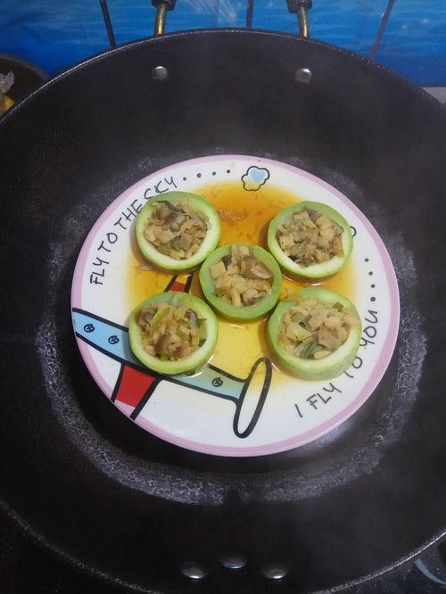 4. 蒸茭瓜:将焯好水的茭瓜片摆放在盘中,淋上调味汁,放入蒸锅中,大火蒸10分钟左右。